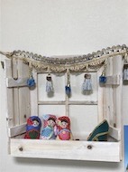 木で出来た窓枠を利用して飾りました。