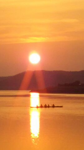オレンジが美しくて、川の水に映るオレンジの夕日は、心の中に浸みました。