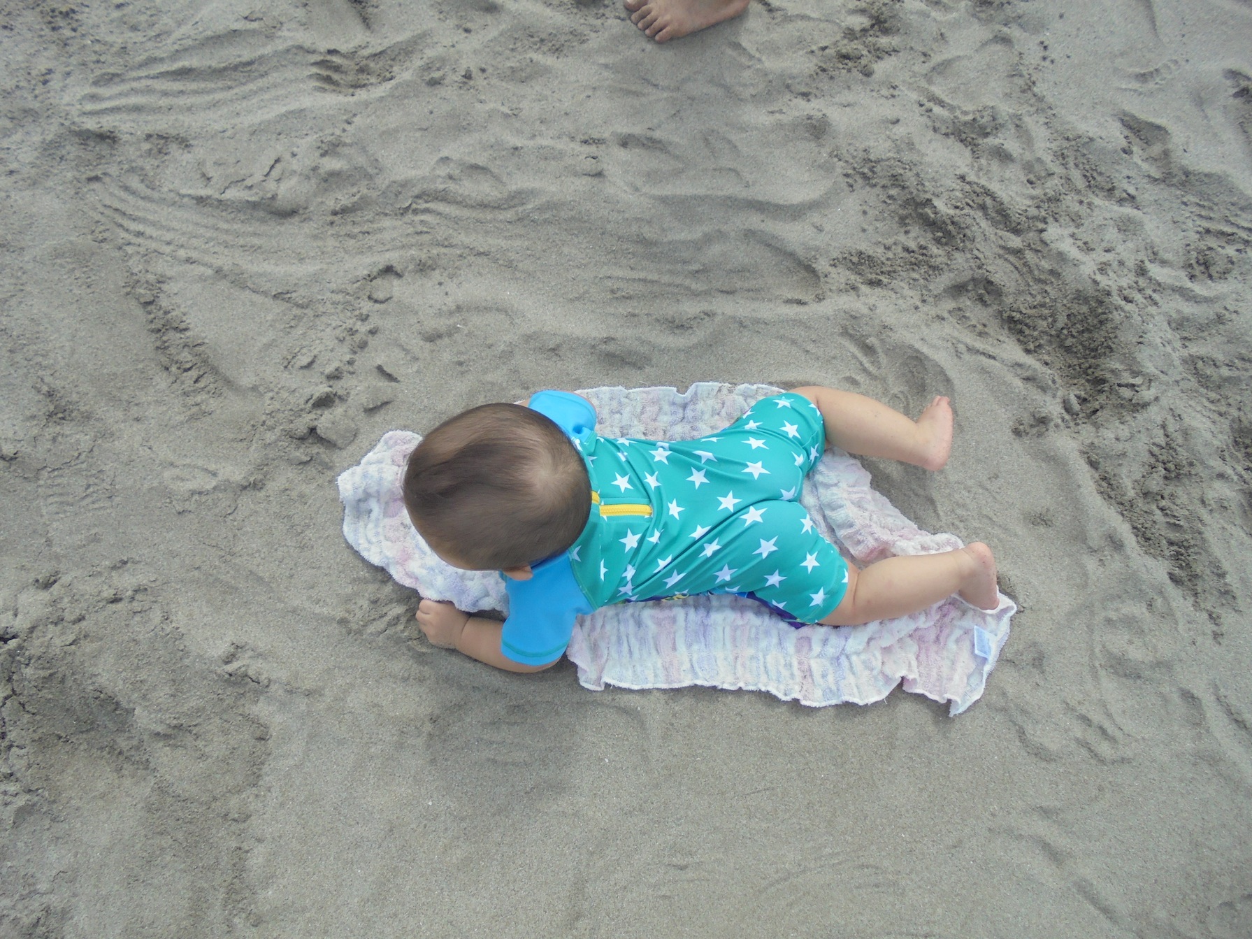 生後6ヶ月になる末の子は、初の「海デビュー」。