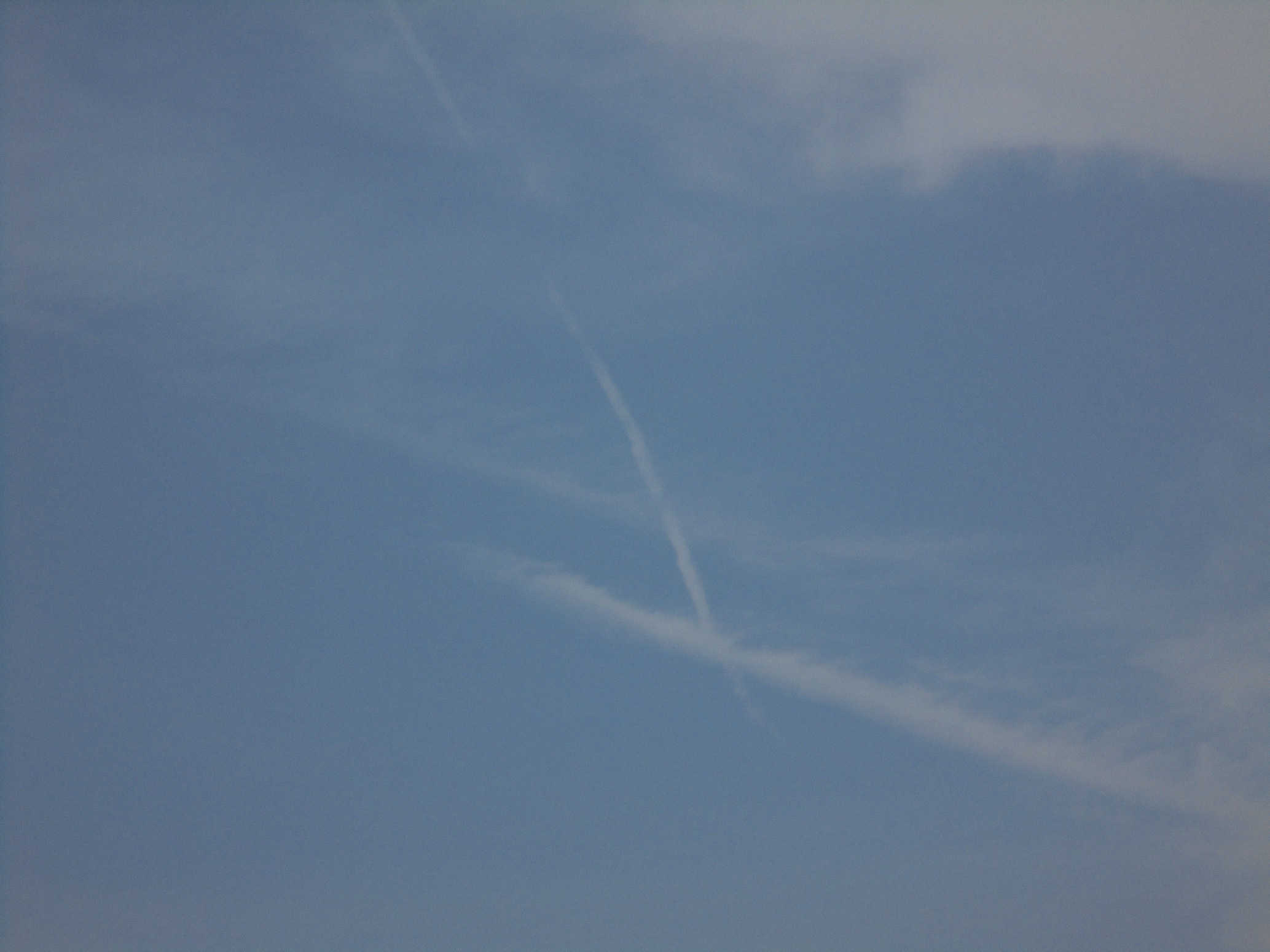 そして、別の方向を見上げると、雲と飛行機雲が合体して、「クロス十字」が見えました。