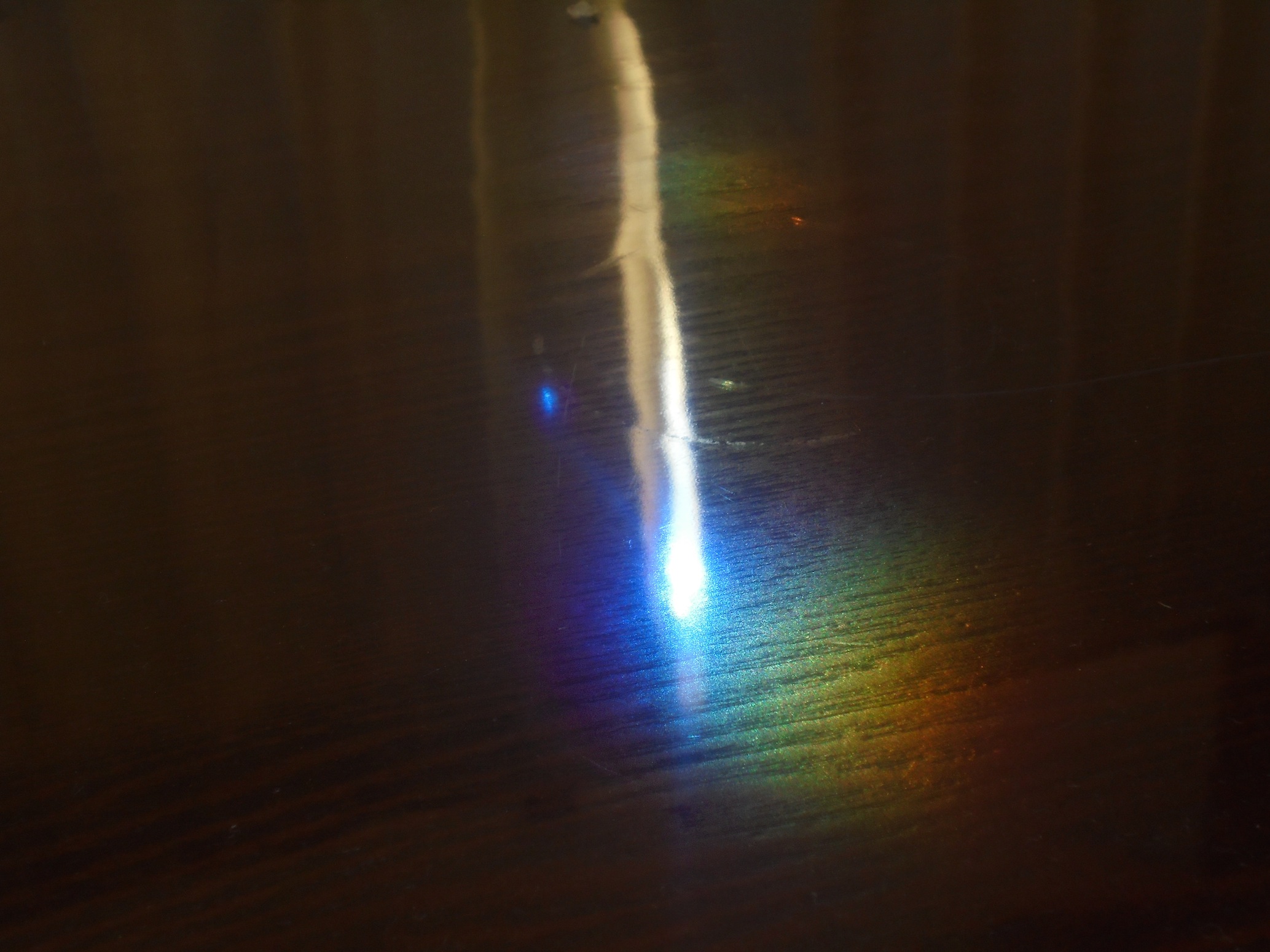 それから、部屋に入りテーブルの上を見てみたら、虹がテーブルの上に出ました。