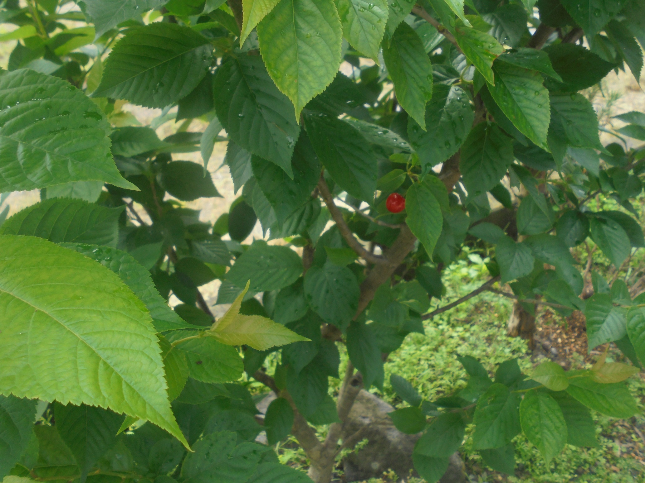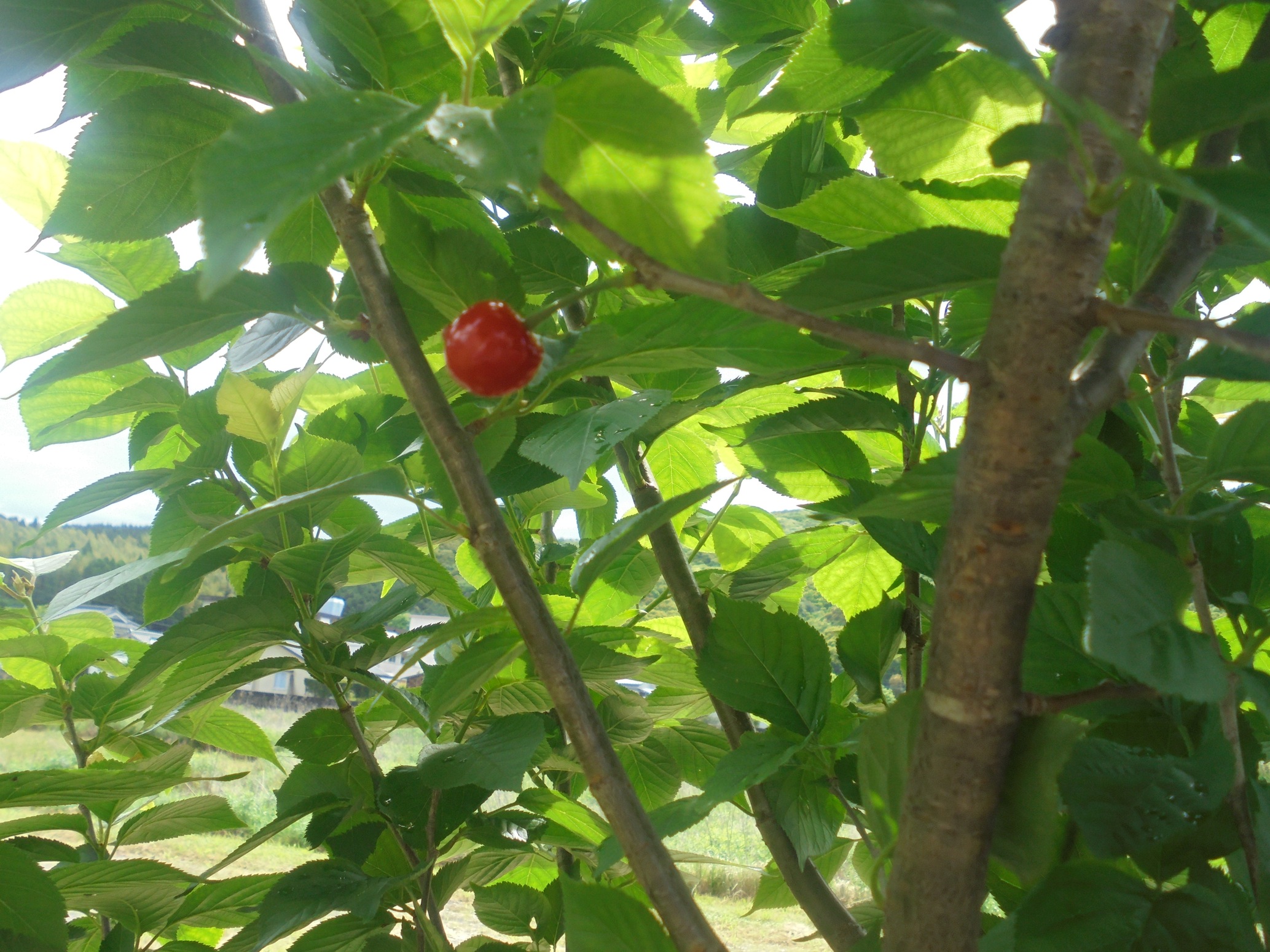 小さい赤いひとつだけのサクランボの実は