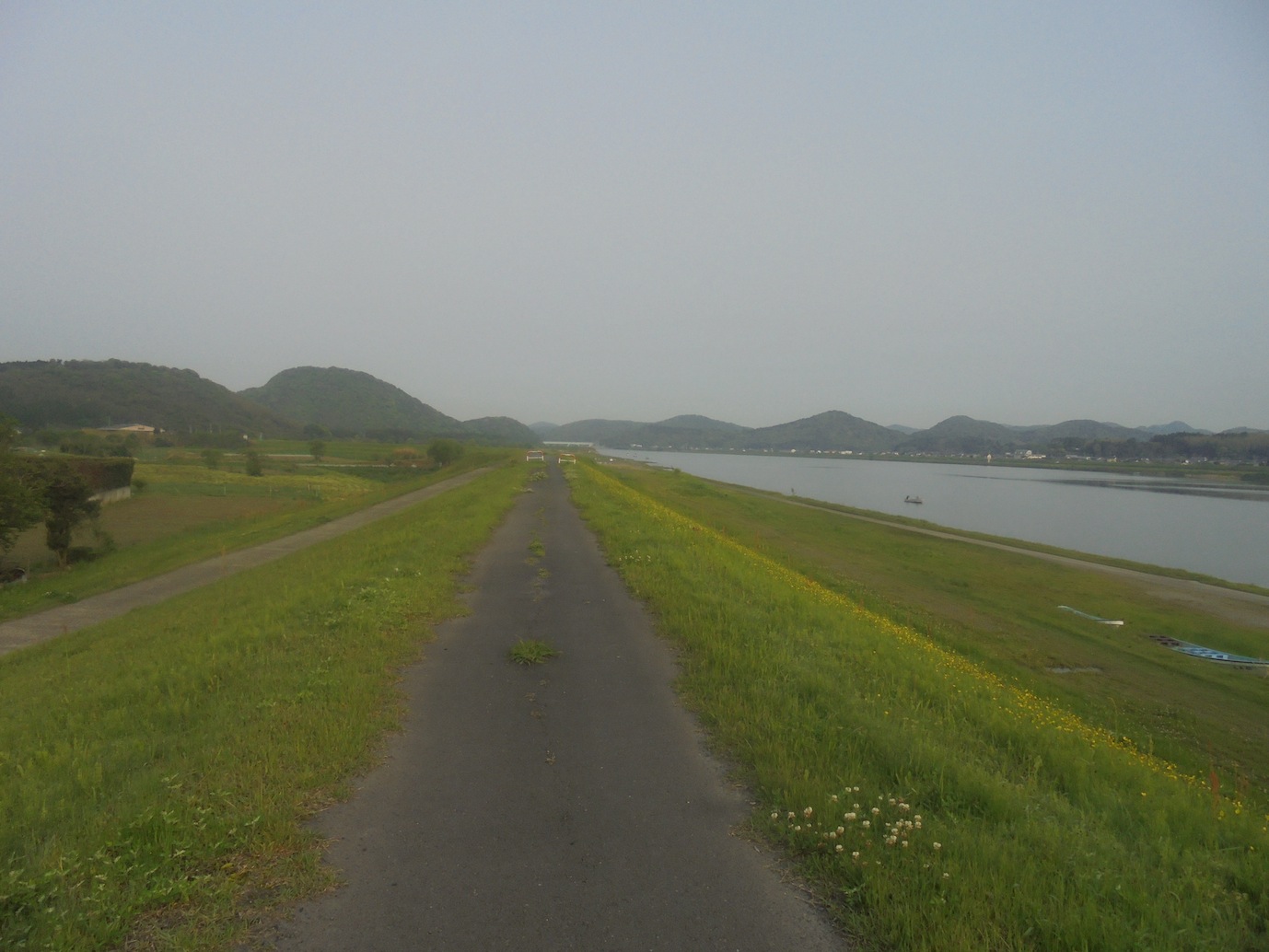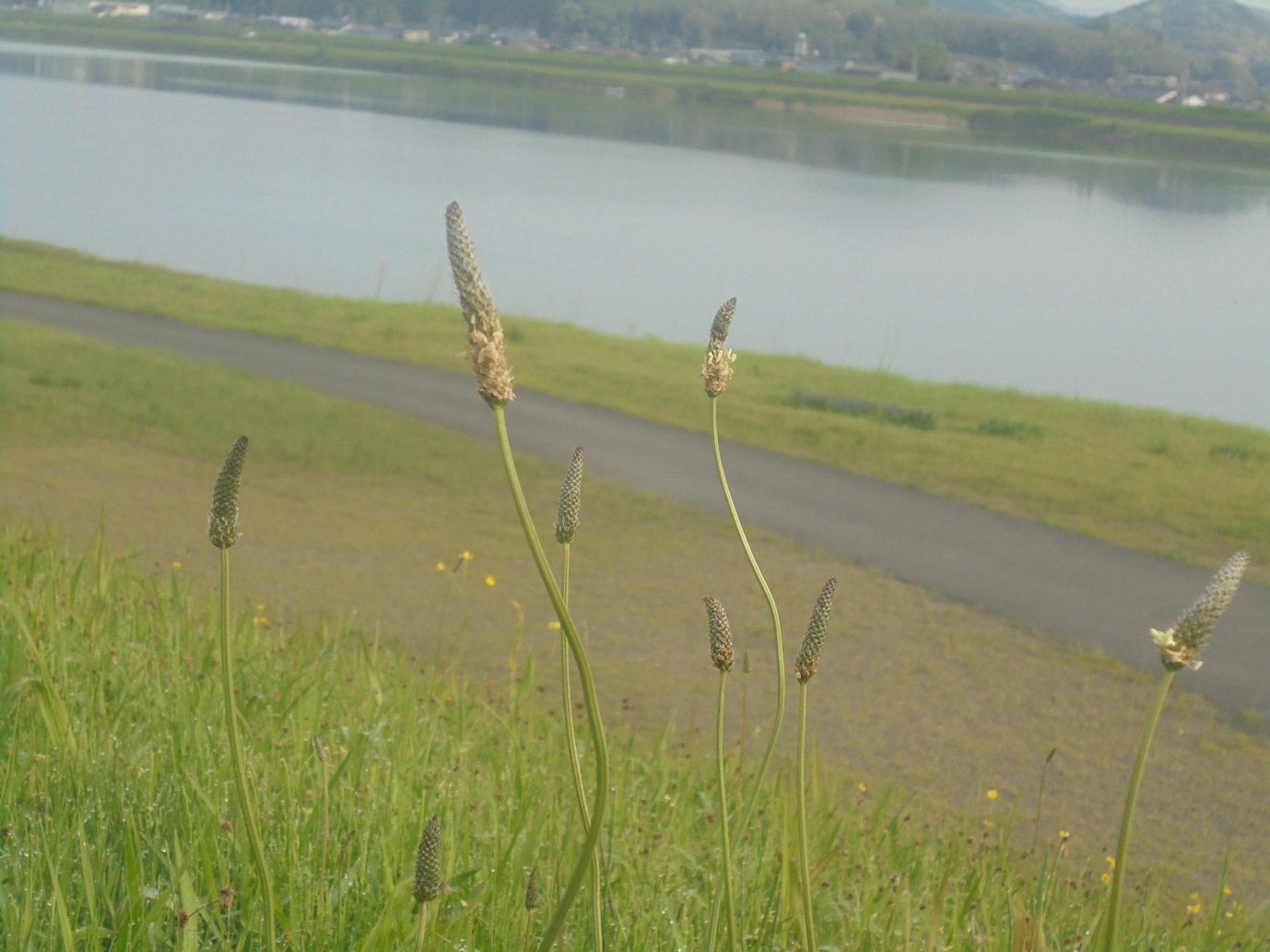 堤防沿いの道に、ひょ〜んと草が生えていました。