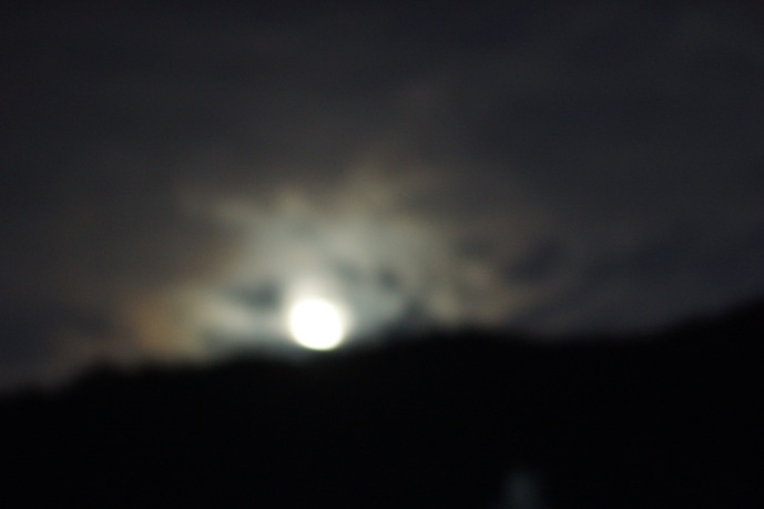 しかもビデオが撮影しやすいように、道の隅にセッティングしていましたら、暗闇なのに、おばさんが、自転車で現れ、「月がきれいだね〜え。」と大きな声で、ビデオの近くで話しかけてこられました。